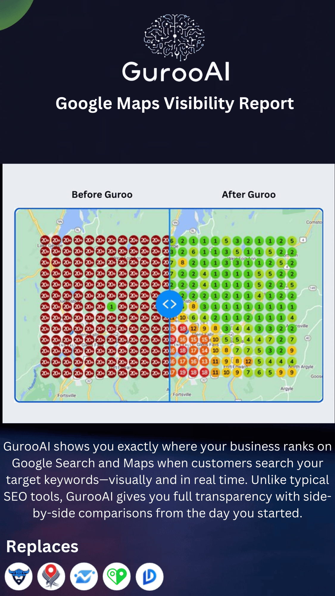 Get instant access to keyword rankings, heatmaps, and performance insights. Guroo shows you exactly what’s working—and what to do next.